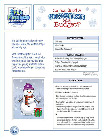 Our office is committed to highlighting and expanding fun financial literary activities that are designed to put our young people on a pathway toward success. In that same spirit, the Treasurer's office has developed classroom activities that may be replicated at school or at home to help students better understand budgeting basics.